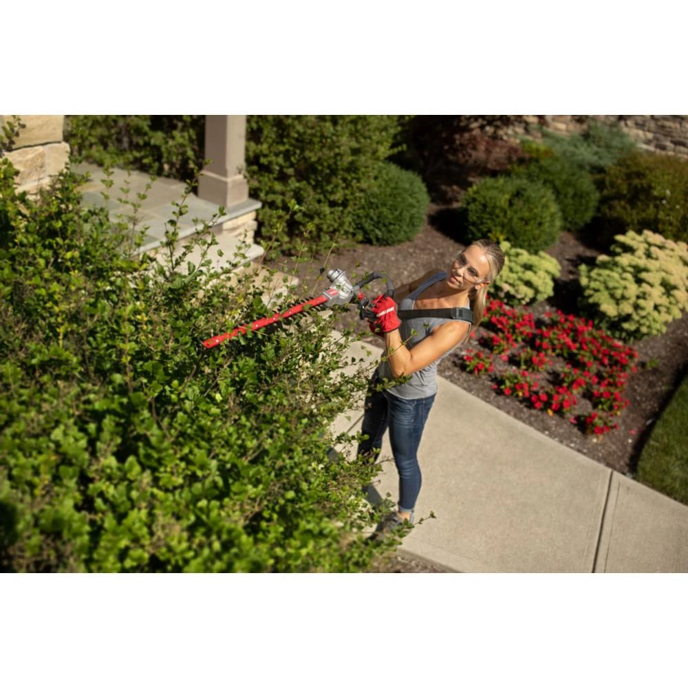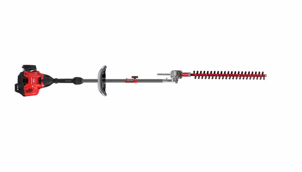 The CRAFTSMAN® HT2200 gas powered hedge trimmer features a 25cc 2-cycle engine that is lightweight and easy to use. Equipped with 22-in dual action blades and 135 degrees of rotation for premium hedging performance. Users can achieve optimal comfort with ergonomic overmold handle. The HT2200 hedge trimmer is attachment capable to convert it into other lawn care products (attachments sold separately).