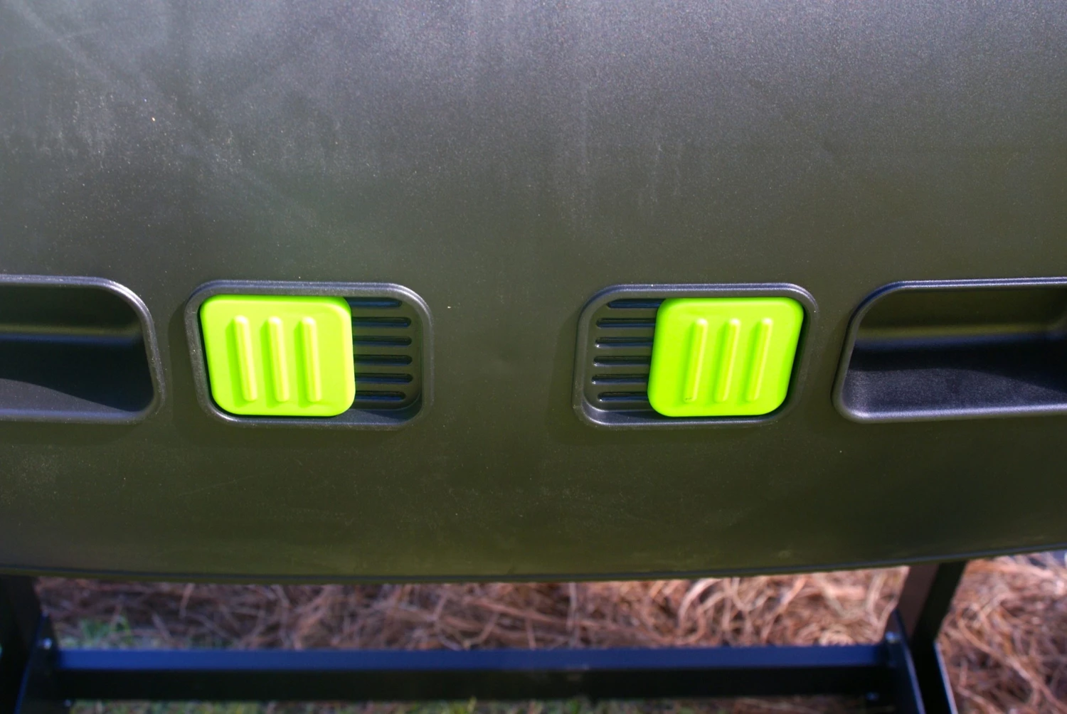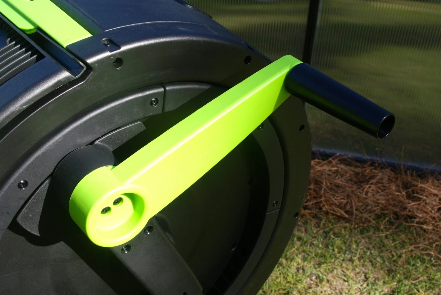 - Ratcheted locking handle and geared handle which allows for easy turning of Composter, even when fully loaded