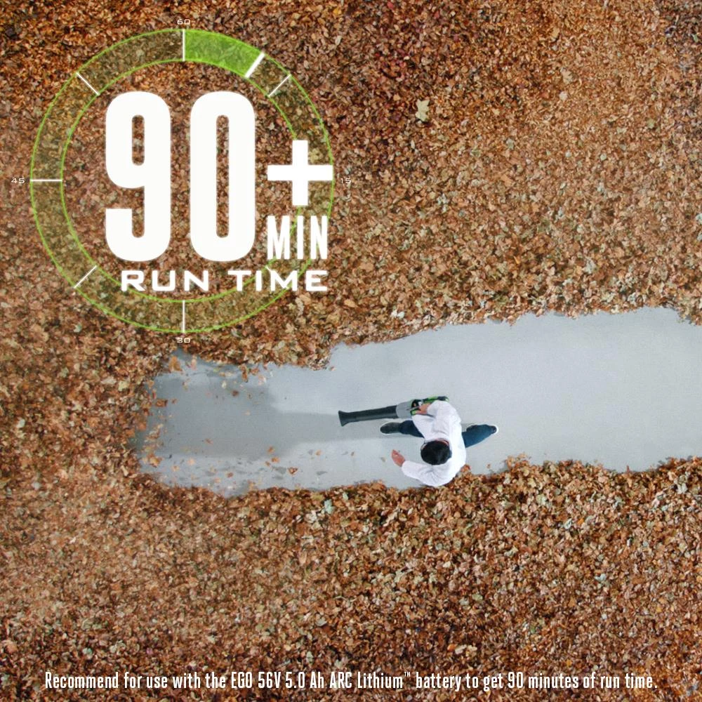 The industry’s most powerful blower is here! Introducing the 650 CFM EGO POWER+ Blower. With air speeds that compare to a category 5 hurricane of 180 MPH, this blower can move wet leaves, rocks, mud, snow and more. With an all new lock on speed control dial, you can adjust your speed from 250 CFM to 500 CFM. When you are ready to move the heavy debris hit the turbo button for 650 CFM! All of this industry leading power is combined with industry leading run times; up to 75 minutes of continuous run time. The high-efficiency brushless motor delivers longer run time, low vibrations and an extended motor life. Turbine fan engineering, inspired by advanced aeronautics technology, performs better than premium gas-powered models. The included flat and tapered nozzles make clearing debris in all conditions easy. This quiet, light-weight and compact blower gets the job done faster and quieter than gas! Experience Power Beyond Belief without the noise, fuss and fumes.