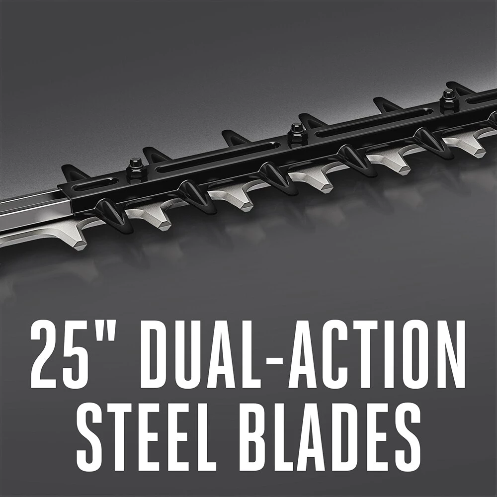 - 25 in. dual-action, double-sided steel blades for precise, clean cuts