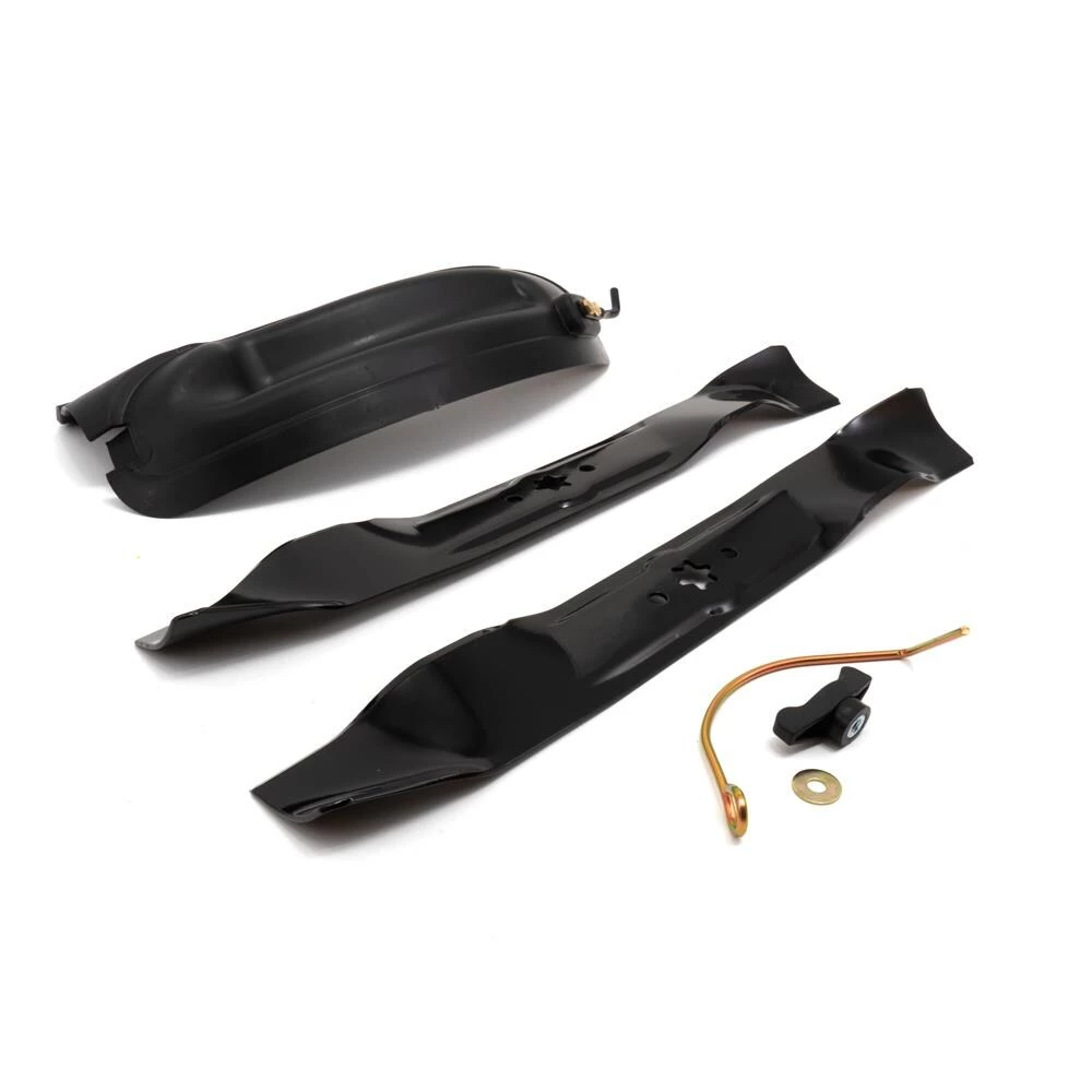 - Includes: 2 mulching blades, molded plug, mounting hardware and instructions