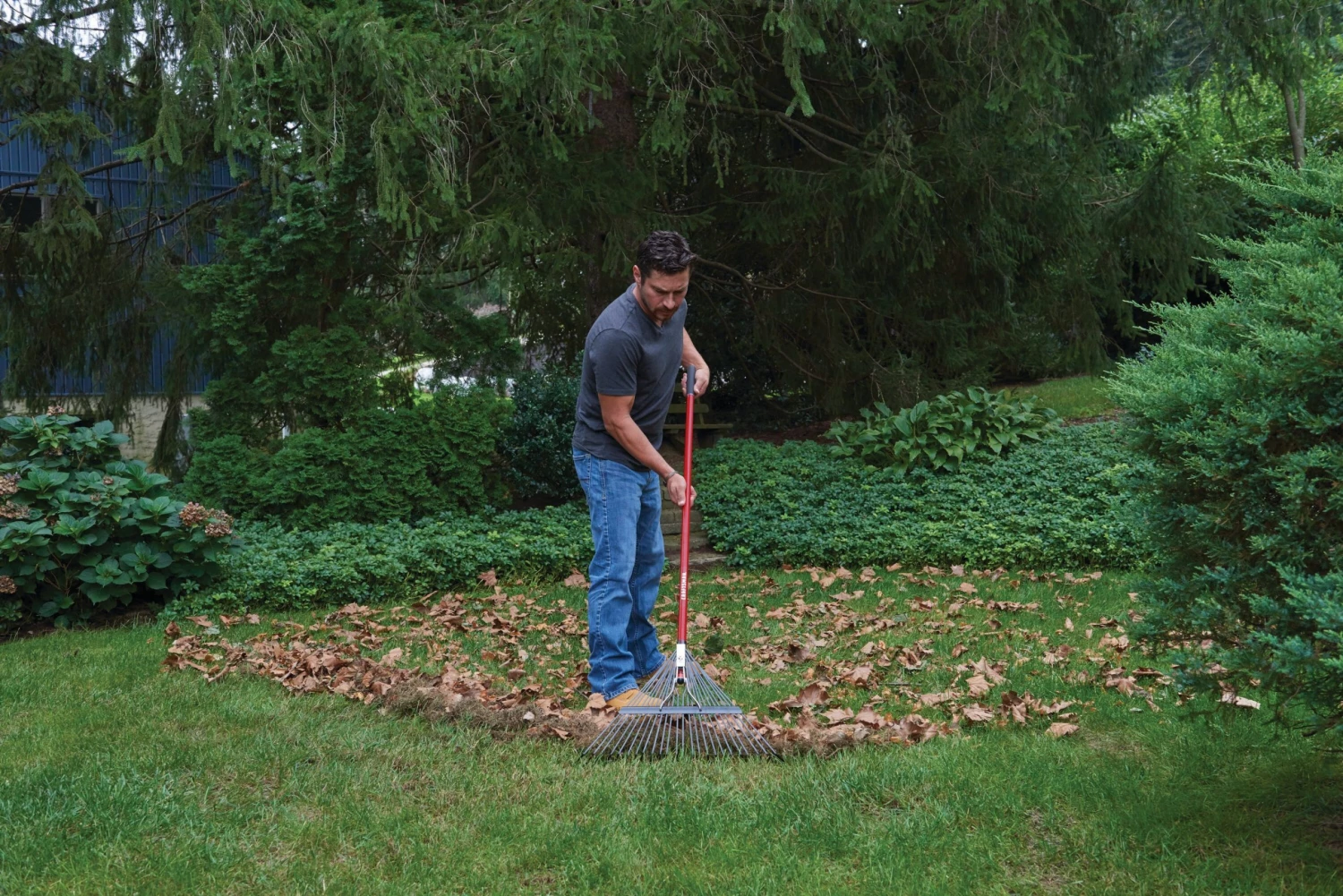 - Fiberglass handle lawn rake is ideal for raking leaves, removing thatch and other debris from lawns