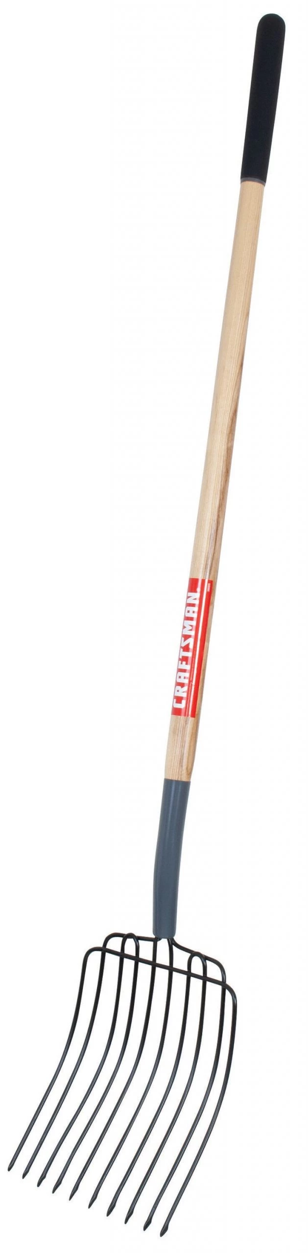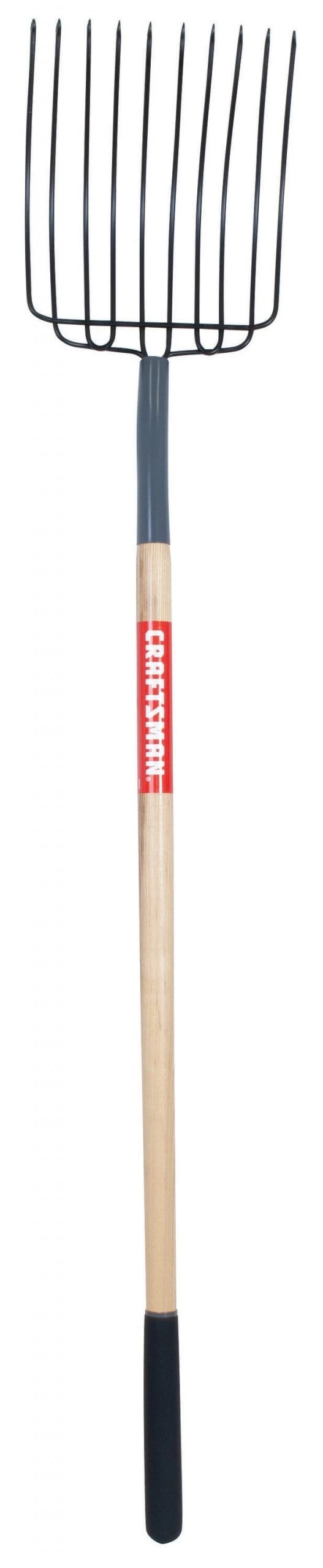 The CRAFTSMAN wood handle bedding and mulch fork can move a variety of materials such as straw, hay, wood chips and mulch. With 10 steel tines, it is ideal to clear and replace mulch around plants and trees. The 48 In. hardwood handle and 8 In. steel connection makes the CRAFTSMAN mulch and bedding fork ideal for general purpose farming, agriculture and landscaping work.