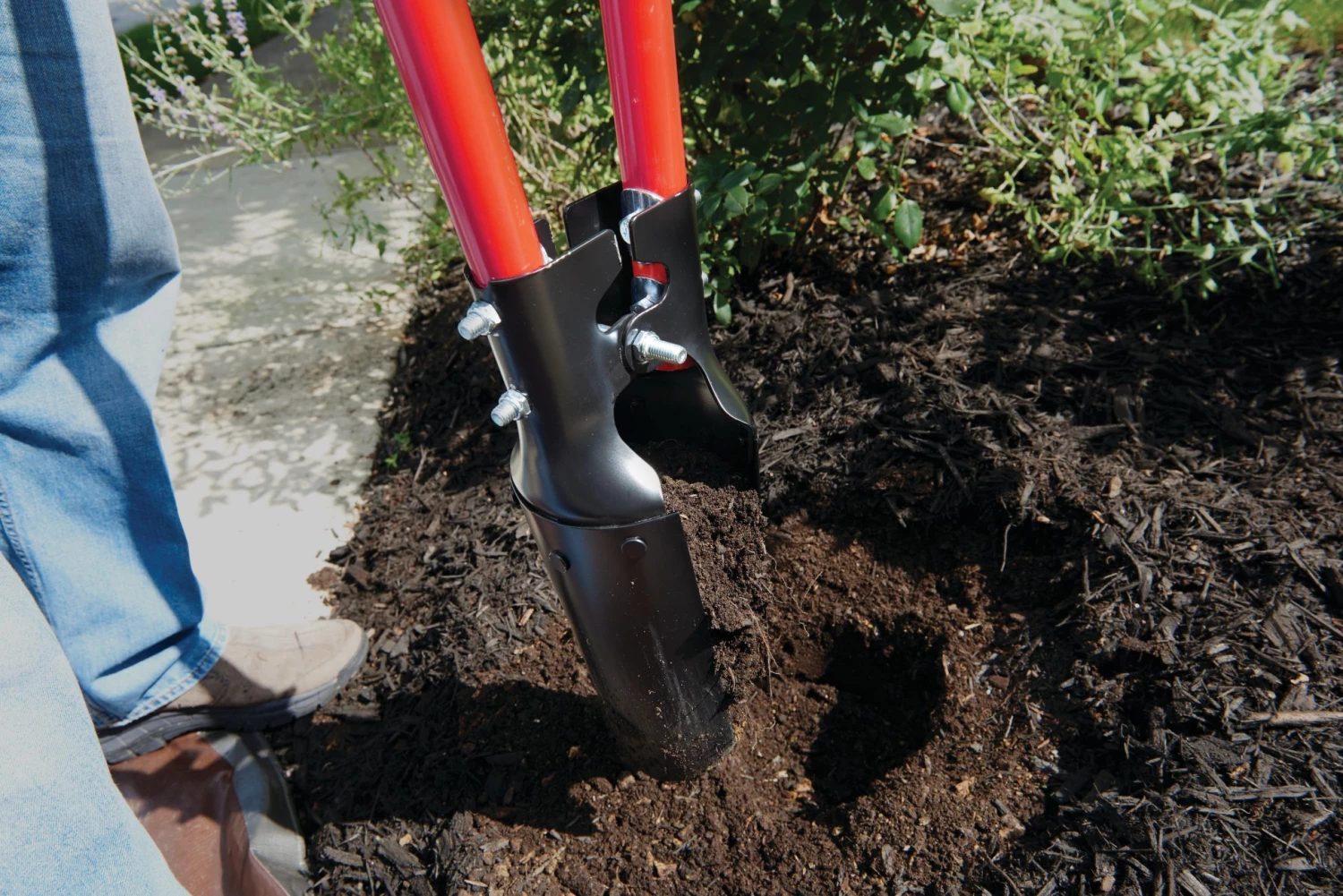 - After inserting blades as far as possible, pull the handles apart and lift to remove soil